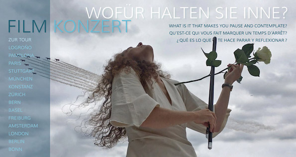 Der 77 min. Doku-Film über die interaktive STILLE-Präsenz-Performance im Sommer 2018 in 14 europäischen Städten und sechs Ländern zu der Frage, wofür wir innehalten – und zum Kaleidoskop spontaner Antworten im öffentlichen Raum, gesammelt in über 20 Sprachen auf großen ausliegenden Papierbahnen – wird nach sieben Jahren noch einmal zur Finissage der Ausstellung PEACE OF ART gezeigt. Eine zeitlose performative Studie über das, was uns im Zeitgeschehen innehalten läßt. Ein Stumm-Film als meditativer Raum mit Live-Konzert.